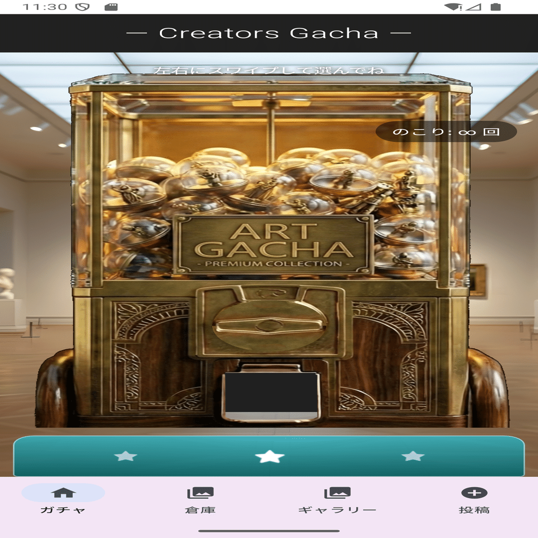 詳しくは、トップ画面のガチャ本体の真下にある☆(真ん中の☆)を押すと設定画面がでます。