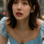 (↑ フタトガリアオイガの幼虫の気持ちになって一人でオクラホマミキサーを踊る女性のイメージ写真)
