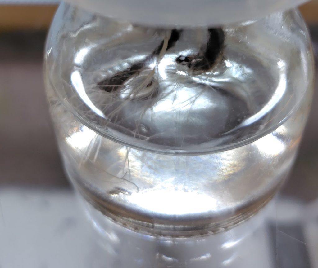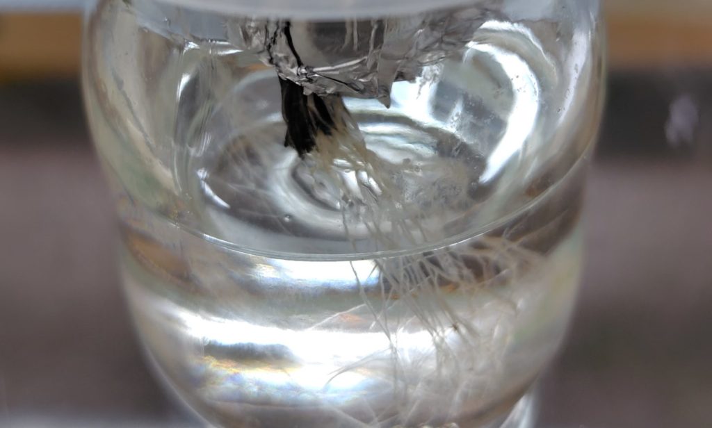 発芽から2,3日ですが、根が液肥の中まで伸びてきているのがわかります。