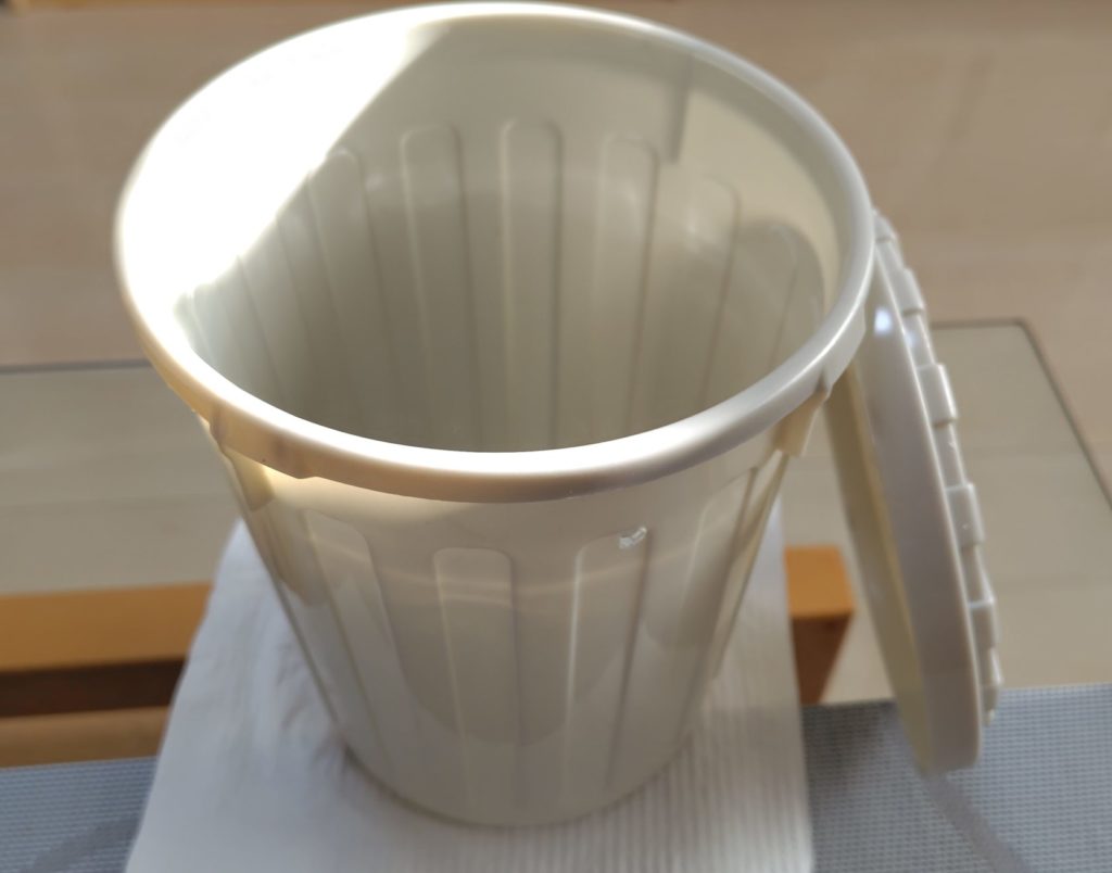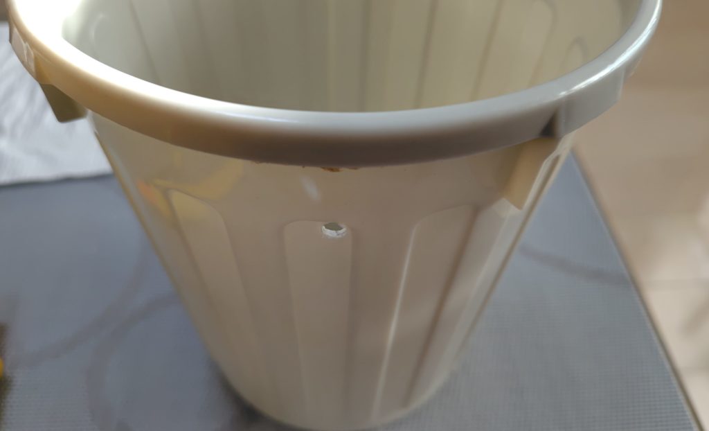 今回は、100均で購入した蓋つきバケツ(ゴミ箱?:容量2リットルくらい)での水耕栽培の中型容器の作り方を説明します。