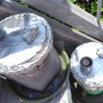 両面テープを蓋の側面などにつけ、蓋の外側にアルミホイルをつけます。