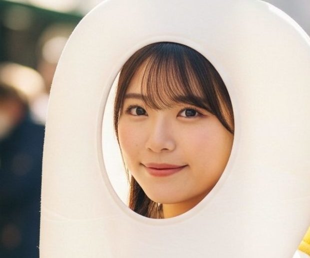(↑ 大根の坊や「背中に蜂付き」の着ぐるみの女性のイメージ写真)