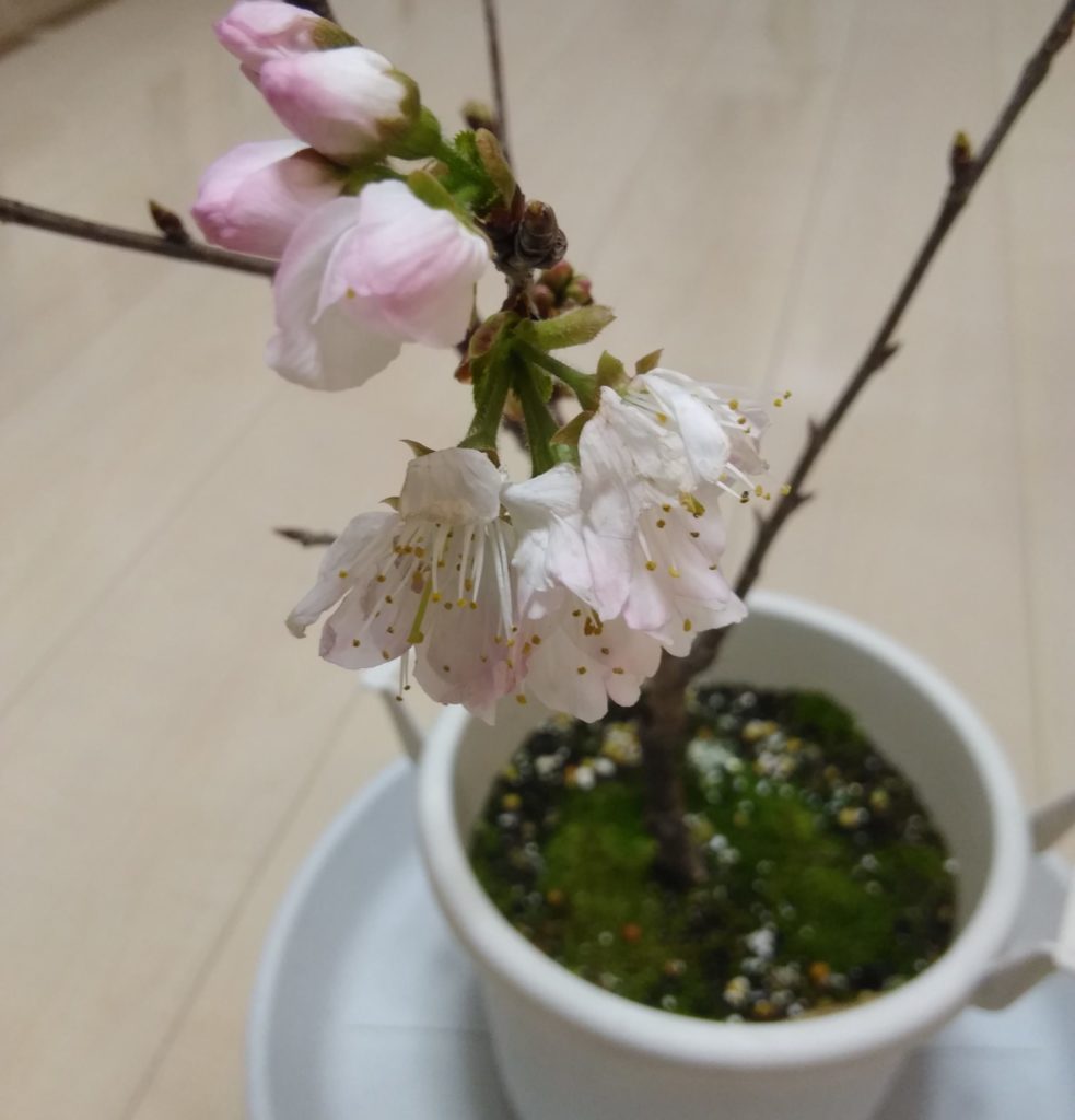 加奈ぽこラボでは、鉢植えの暖地桜桃を室内にもちこみ、毎年花見をしています。
