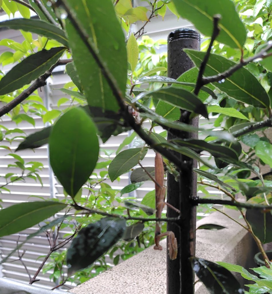 7月11日、鉢植えのローリエ(月桂樹)の陰に、落ち葉がついていると思い、回収しようと近づいたところ、「うぉ~」と声が出てしまいました。