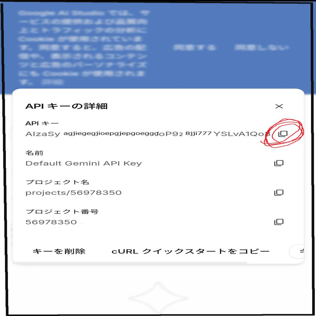 このようになるので、一番上のAPIキーの右にあるコピーボタンを押してください。